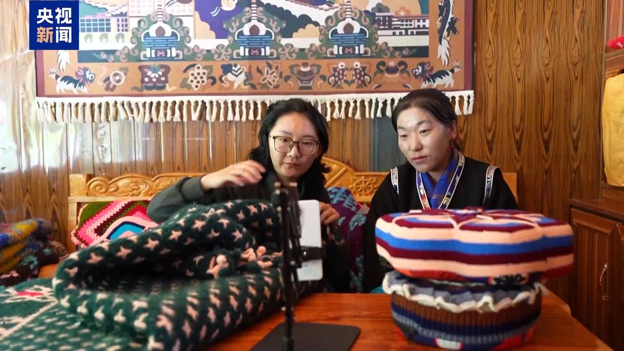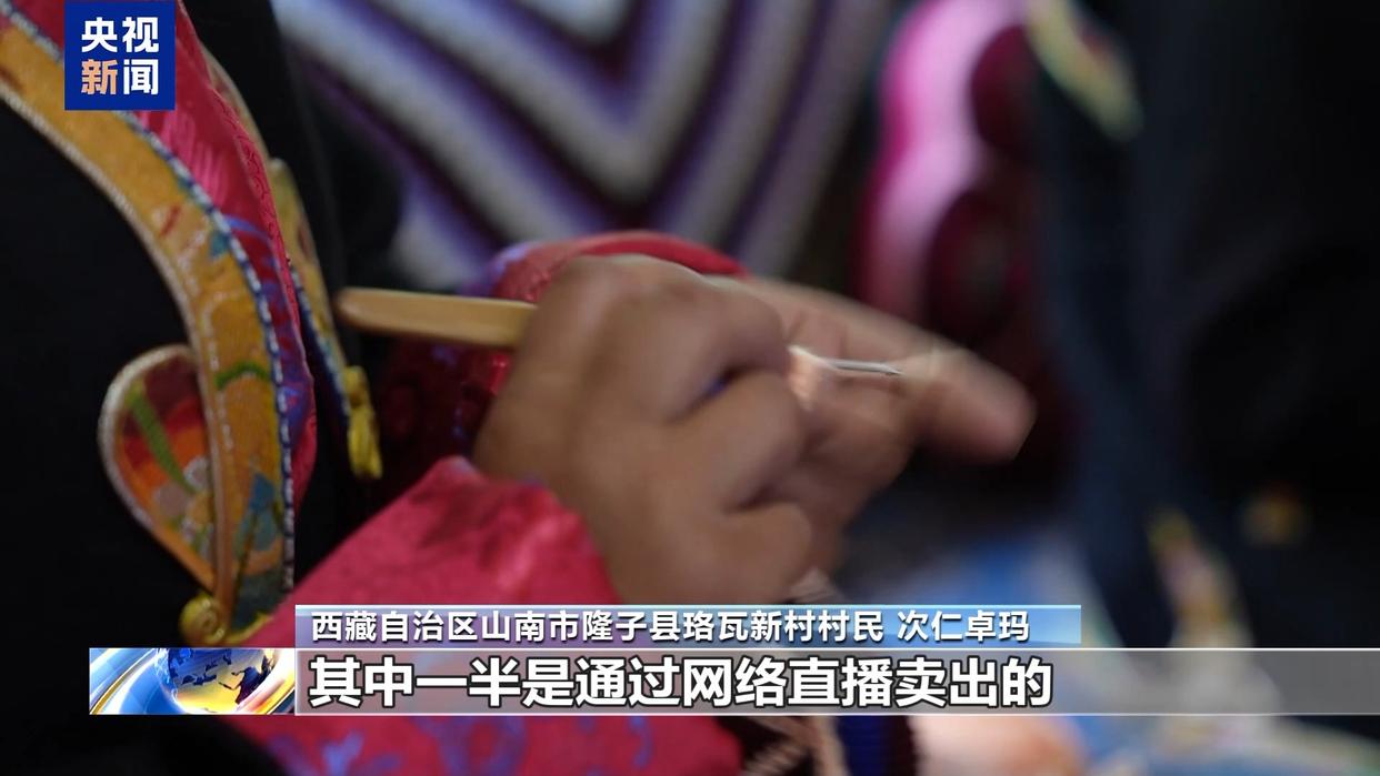 西藏自治区山南市隆子县珞瓦新村村民 次仁卓玛:今年以来,我们已经卖出了50多条毛毯,100多个靠枕,其中一半是通过网络直播卖出的。